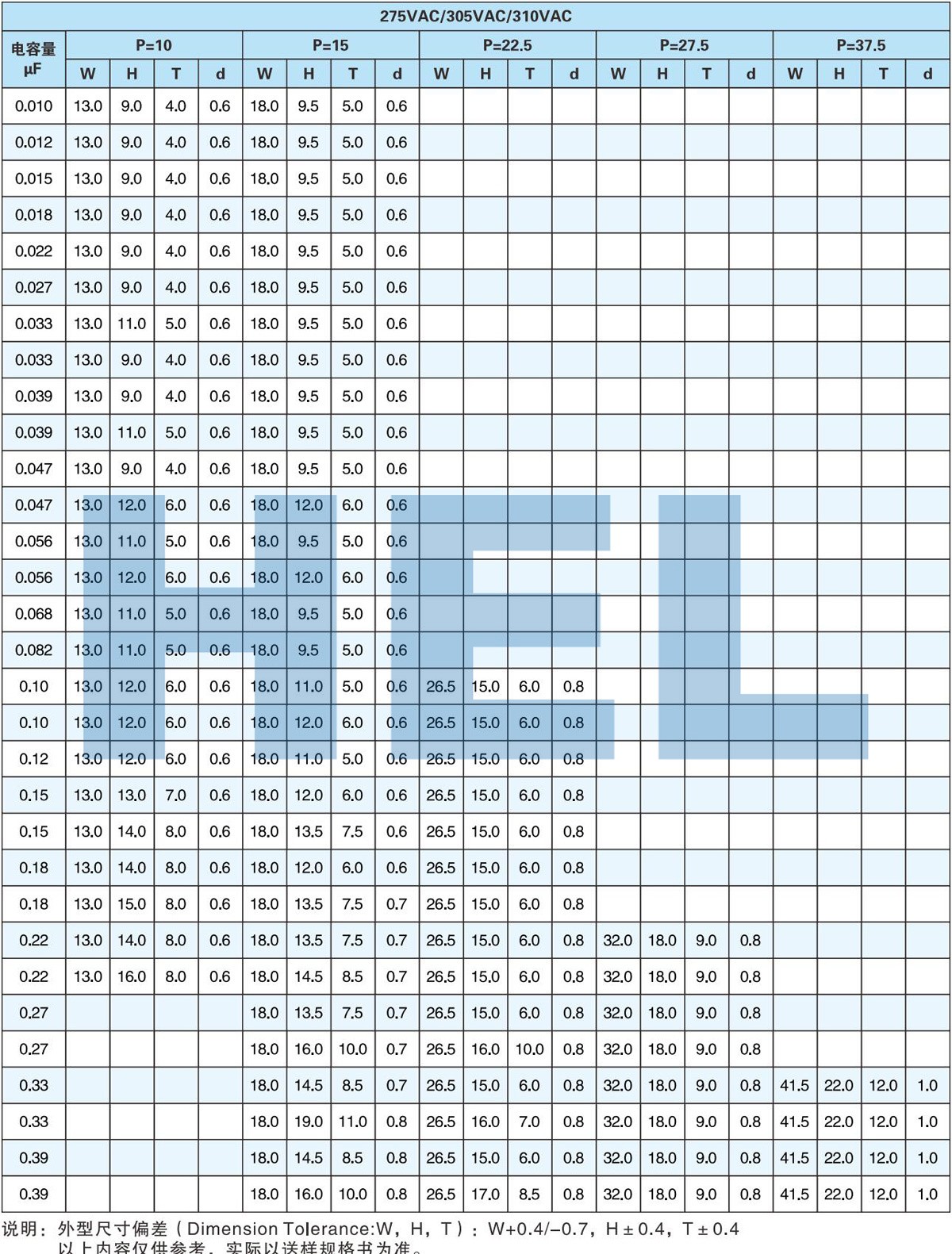 MPX 塑料外殼金屬化聚丙烯薄膜抗干擾電容器(X2)